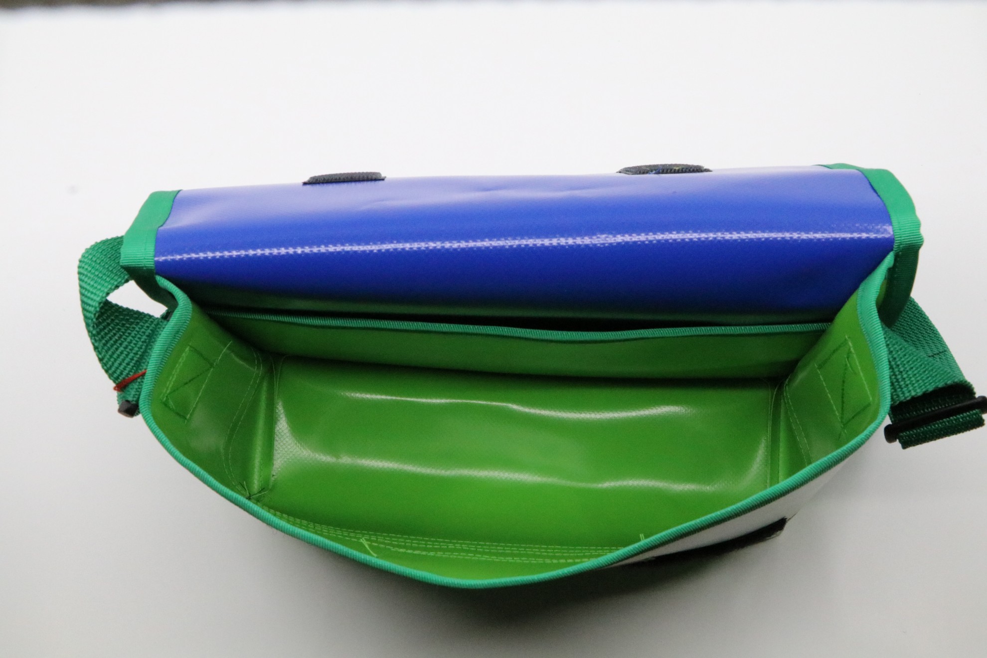 Die Kindergartentasche fertige ich aus Blachen an. Blachen sind robust, wetterfest und wenn mal etwas ausläuft, lassen sie sich einfach mit Wasser auswaschen. Sie verfügen über ein Innen- sowie ein Namensfach. Auf den Seiten und dem Deckel nähe ich zudem reflektierendes Band auf, damit die Kinder auch in der dunklen Jahreszeit besser gesehen werden. Jede Tasche ist einzigartig und mit viel Liebe hergestellt.