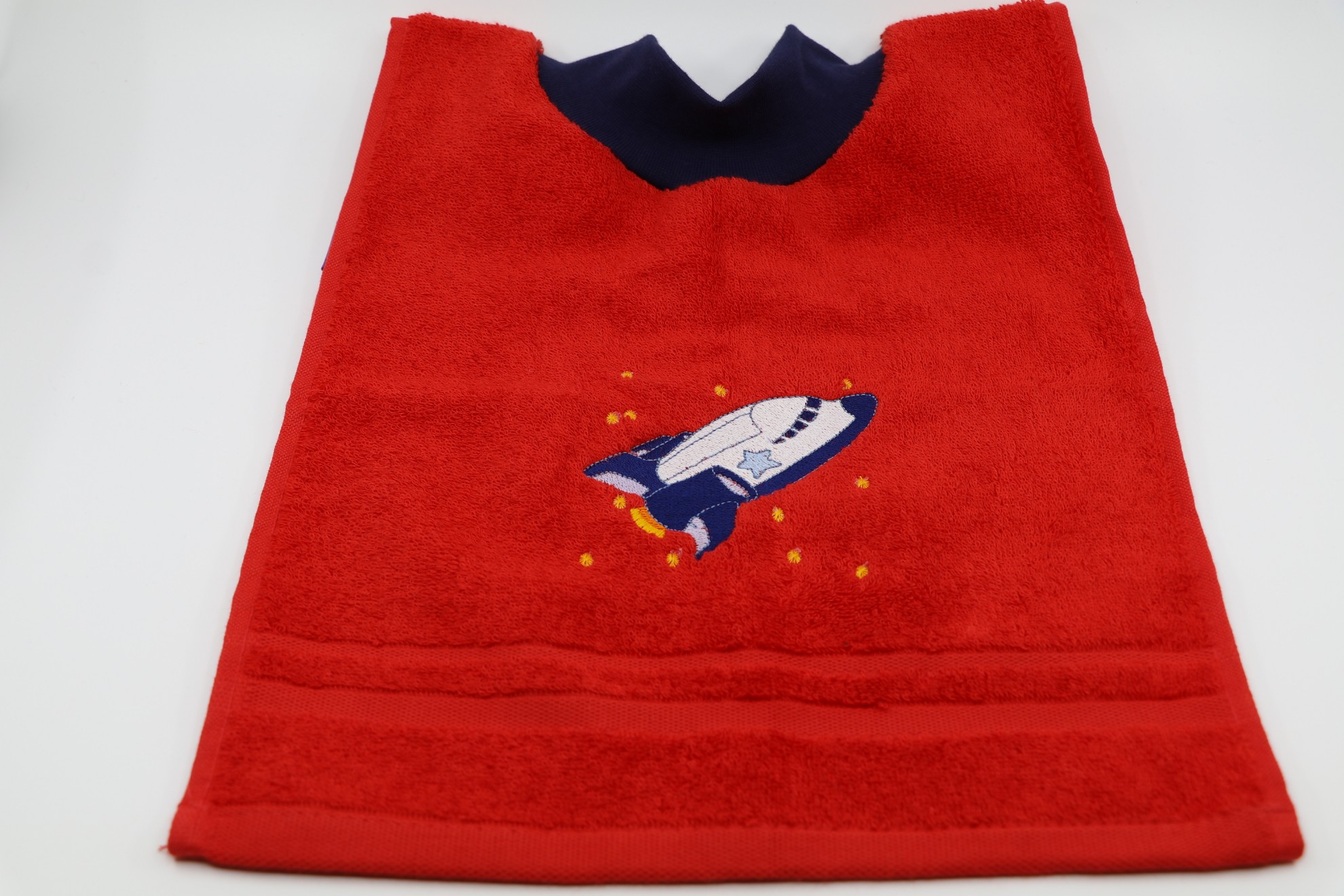 Lässiges Lätzli mit Bündchenausschnitt. Die Bündchenfarbe richtet sich nach dem Motiv, der Farbe des Lätzli und der Verfügarbkeit. Grösse der Lätzli: ca. 30x50cm