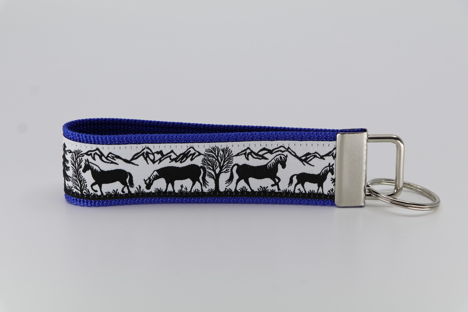 Schlüsselanhänger Scherenschnitt Pferde auf blau